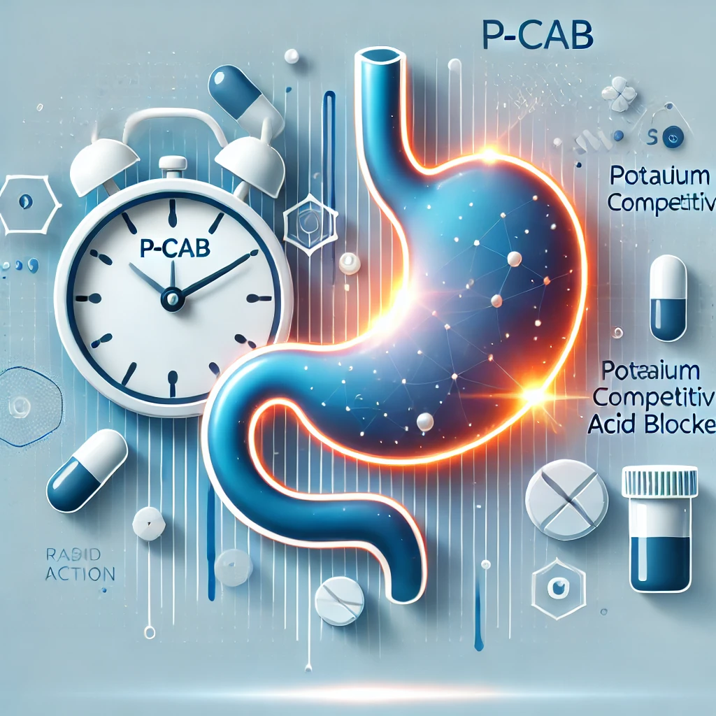 P-CAB(포타슘-경쟁적 산 억제제)는 기존의 PPI(프로톤 펌프 억제제)에 비해 빠르고 지속적인 위산 억제 효과를 제공하며, 위식도역류질환(GERD) 환자에게 새로운 대안을 제시합니다.